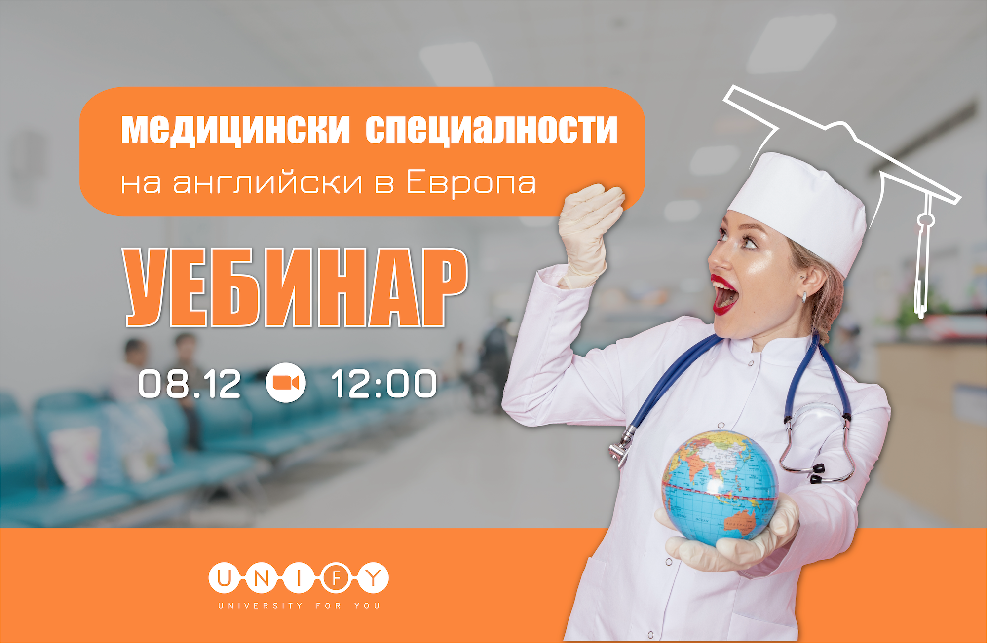 На 8 декември от 12:00 ч. Unify ще проведе специален уебинар за всички ученици, които мечтаят за медицина, дентална медицина или фармация и искат да ги изучават на английски език в престижни европейски университети.